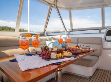 "Serendipity," the stunning 86-foot Nordhavn, offers three staterooms, including a luxurious master ensuite with a king-sized bed and two queen guest suites, each featuring their own private bathrooms. Enjoy expansive multi-level deck acess, including a spacious flybridge and a top-deck jacuzzi.